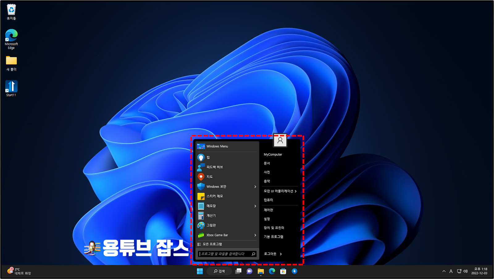 6 시작 스타일으 변경하고 싶다면 바탕화면에 생성된 Start 11 아이콘을 클릭하여 Start 11 설정을 통해 윈도우 시작 및 작업표시줄 스타일을 설정 할 수 있습니다.